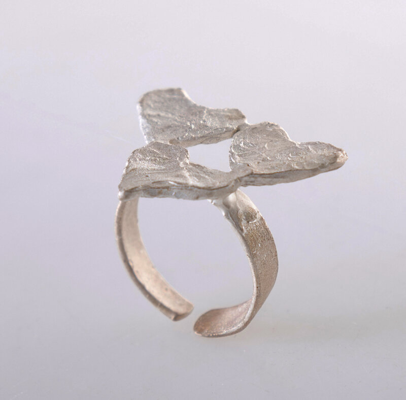 Anello in argento 925, realizzato a mano con l'antica arte della fusione a cera persa. Gambo regolabile.